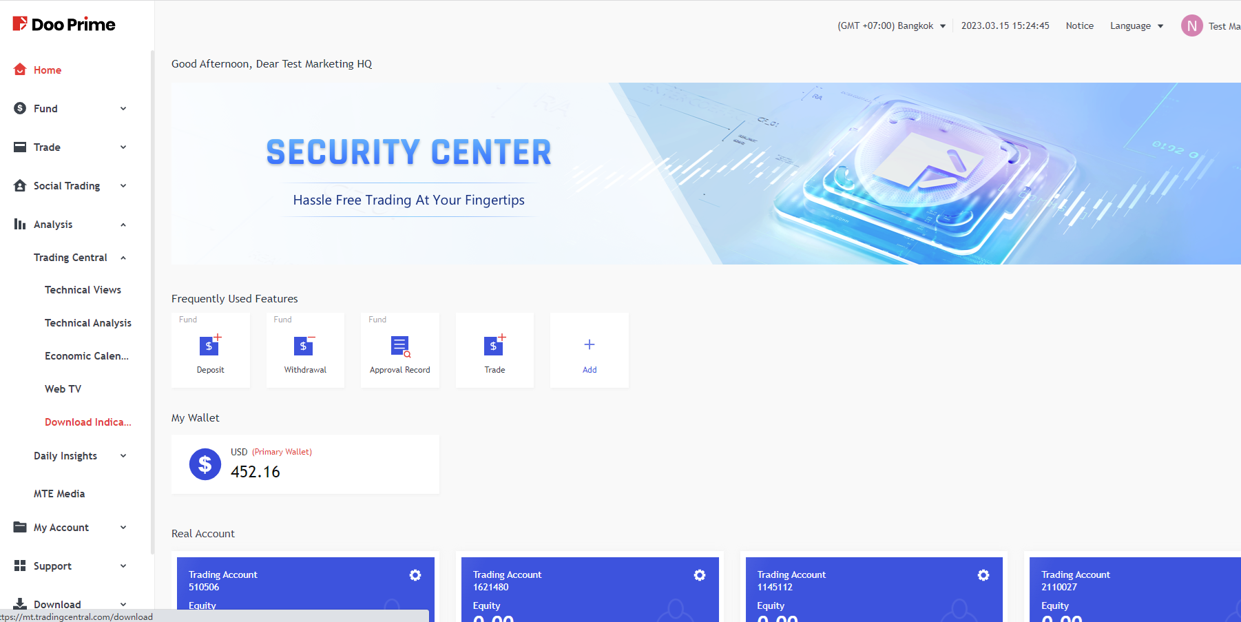 1. أولاً ، يرجى تسجيل الدخول إلى Doo Prime User Center ، ثم النقر فوق "تحليل" في شريط القائمة الأيسر وتحديد "تنزيل المؤشرات". يرجى التحقق من شريط القائمة السفلي في هذه المرحلة ، حيث تم تنزيل مؤشر Trading Central.
