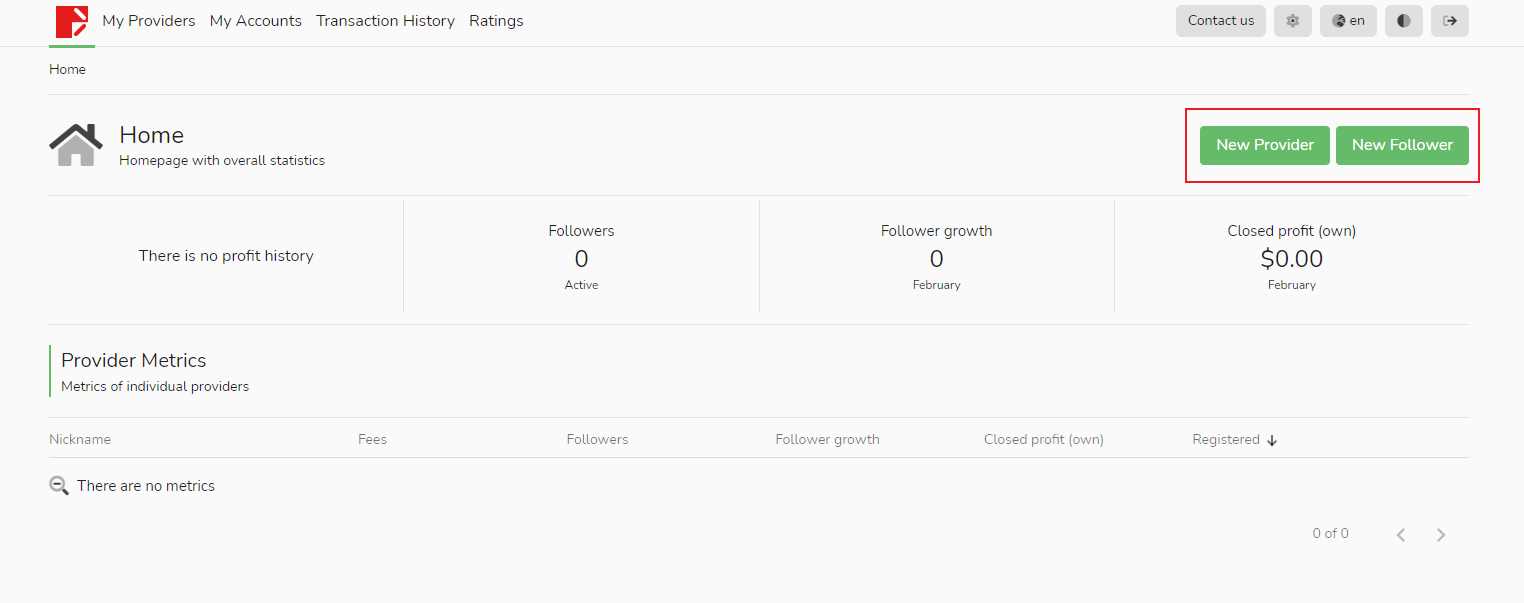 Successfully created trading accounts will be displayed in the [My Account] column in order. After successfully creating a trading account here, you can return to the home page and select [Add Signal Source] or [Add Follower] according to your needs, but please note , the follower cannot follow the signal source created by himself.