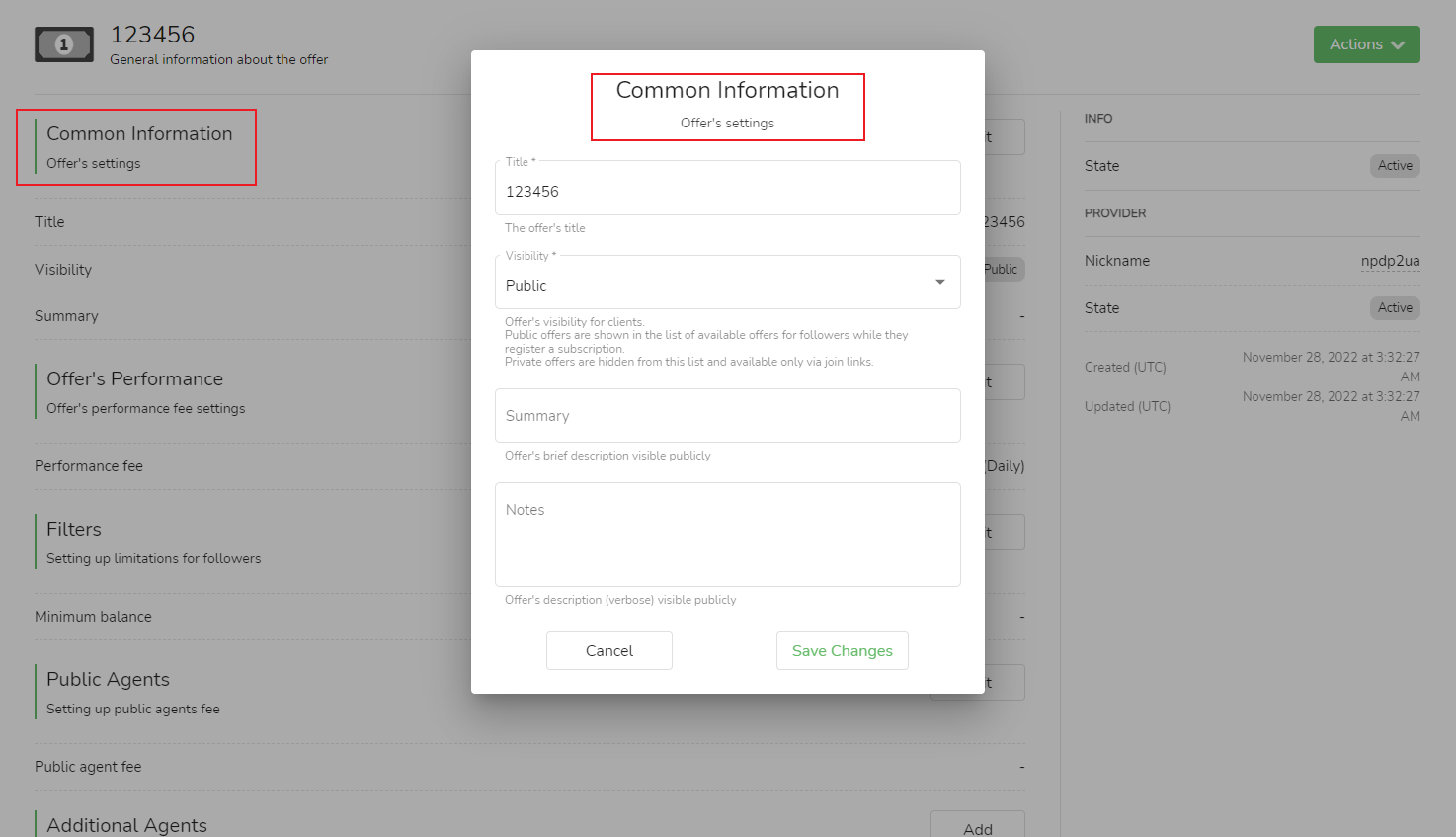 Presentar y promover:La fuente de la señal puede establecer una tarifa de presentación y promoción, que se paga en forma de porcentaje. Tenga en cuenta que el enlace de unión de la fuente de señal a continuación solo se puede agregar después de completar la configuración de la tasa de pago de la tarifa de promoción específica.