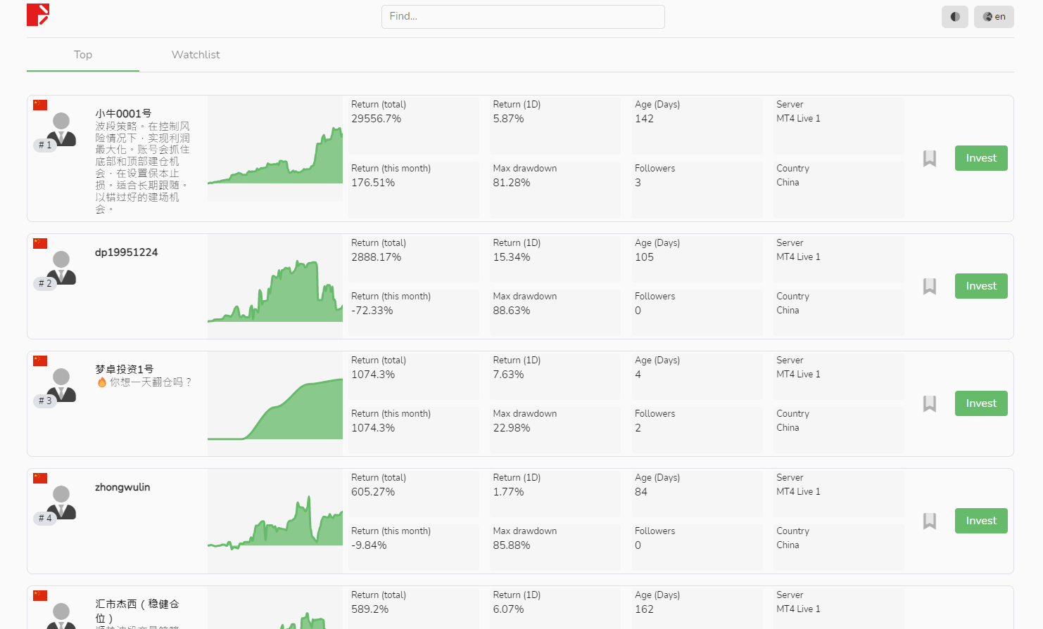 신호 소스 광장에서 팔로워는 수익률, 평균 수익성 거래, 평균 거래 시장 및 투자 유형 등과 같은 각 신호 소스의 자세한 거래 실적 통계를 볼 수 있습니다.