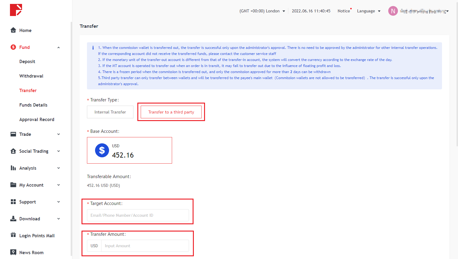 Como transferir dinheiro entre contas de negociação?
