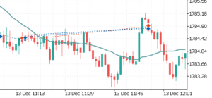 O padrão do MT5 é abrir e fechar posições com setas indicadoras e linhas de conexão para abrir e fechar posições, conforme mostrado na figura: