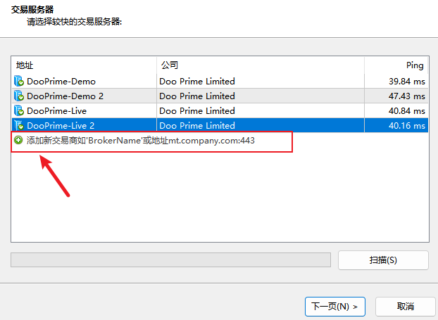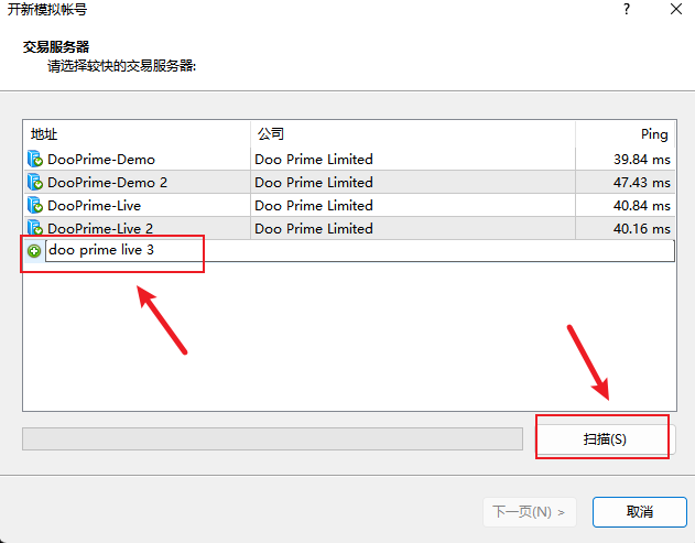 2. 請點擊底部「+ 」按鈕,在空格位輸入「 DooPrime-Live3 」 後點擊「 掃描」。